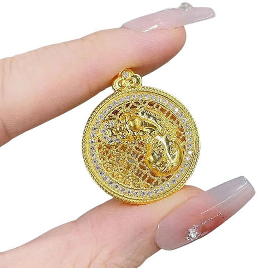 Sale price $1,128.00 AUDEmbrace the elegance of Eastern heritage with the Zodiac Horse Pendant, a stunning piece that combines traditional Chinese craftsmanship with modern luxury. Crafted from 5D hard gold, this pendant features an intricate Moissanite gemstone, offering exceptional brilliance that mimics the beauty of diamonds. The pendant's hollow design represents the continuous flow of energy, while the money coin pattern symbolizes prosperity and wealth. The Tang Dynasty... -