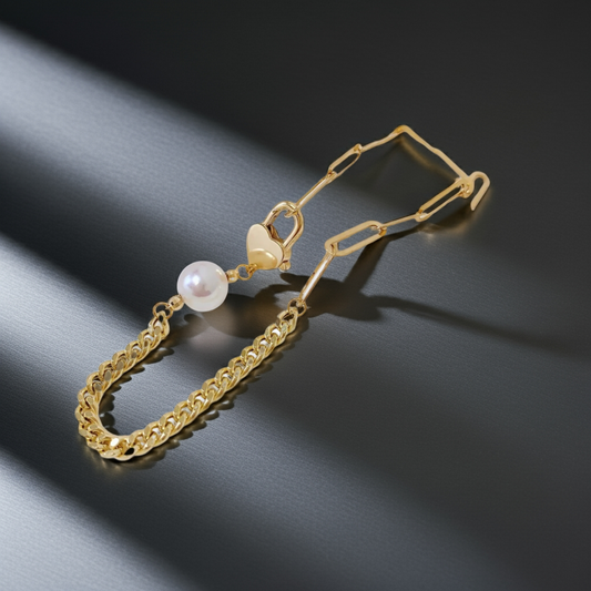 Sale price $788.00 AUDProduct Description The 18K Gold Pearl Heart Lock Bracelet is a timeless symbol of love and commitment. Crafted with 18K gold, this bracelet features a heart-shaped lock design, with an Akoya pearl that radiates natural elegance. The heart lock represents the act of sealing one’s love, while the Akoya pearl embodies purity, sincerity, and beauty. This bracelet is perfect for those who wish to express... -