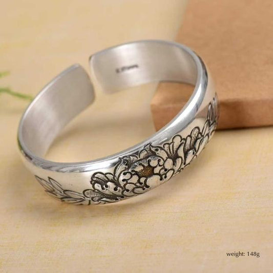 Sale price From $608.00 AUDA timeless piece that combines traditional craftsmanship with modern elegance, the Sterling Silver Vintage-Style Handcrafted Engraved Cuff Bracelet draws inspiration from the rich heritage of Eastern design. Featuring intricate floral engravings, the bracelet’s aged, antiqued finish gives it a unique, vintage charm. Handcrafted with precision from 999 sterling silver, this bracelet not only symbolizes purity and strength but also evokes a sense of history and culture... -