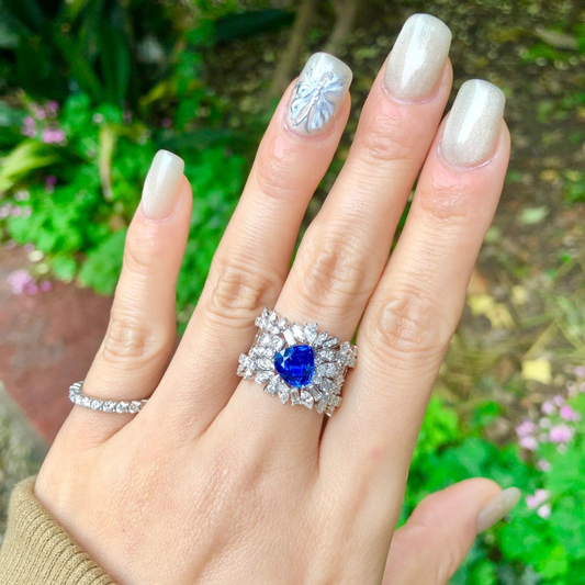 Sale price $40,298.00 AUDProduct Description Discover the epitome of elegance with our 18K Gold Diamond and Unheated Blue Sapphire Ring. This exquisite piece features a stunning unheated blue sapphire, known for its natural and pure deep blue color, set in a luxurious 18K gold band. The sapphire is surrounded by sparkling diamonds, amplifying its natural beauty and creating a striking contrast against the rich gold setting. In Chinese... -