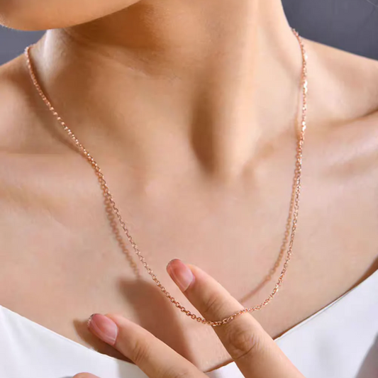 Sale price $718.00 AUDProduct Description:The 18K Gold Necklace is the perfect foundation for your personal collection of pendants. Available in three stunning colors—Rose Gold, Yellow Gold, and White Gold—this necklace offers a versatile and elegant design that effortlessly complements any pendant. Whether you prefer the warm tones of rose gold, the classic elegance of yellow gold, or the modern shine of white gold, this necklace is the perfect... -