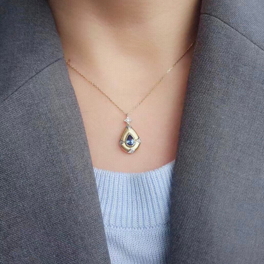 Sale price $1,588.00 AUDThis exquisite 18K gold necklace, featuring a stunning blue sapphire cornflower, combines refined luxury with the timeless beauty of Eastern philosophy. The design, with its brushed finish and chic vintage style, embodies the sophistication and grace of the Italian "Boucher" trend. The cornflower, known for its vibrant blue petals, is a symbol of tranquility and inner peace in Chinese culture. In harmony with the Five... -