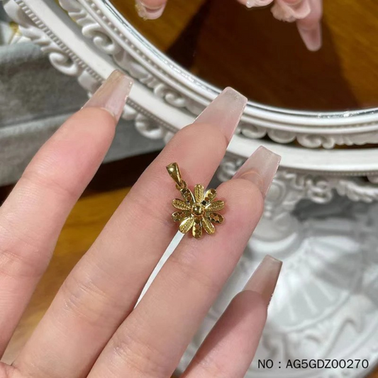 Sale price $868.00 AUDProduct Description: Embrace the warmth of the sun with this exquisite 5G solid gold sunflower pendant. Radiating a vibrant glow, this pendant is designed to symbolize the fulfillment of desires and the hope of brighter days ahead. With its detailed petals and central orb, the sunflower embodies strength, joy, and prosperity—qualities that are deeply connected to Eastern philosophy. Weight (g): 2.02 Product Size (mm): 13.9... -